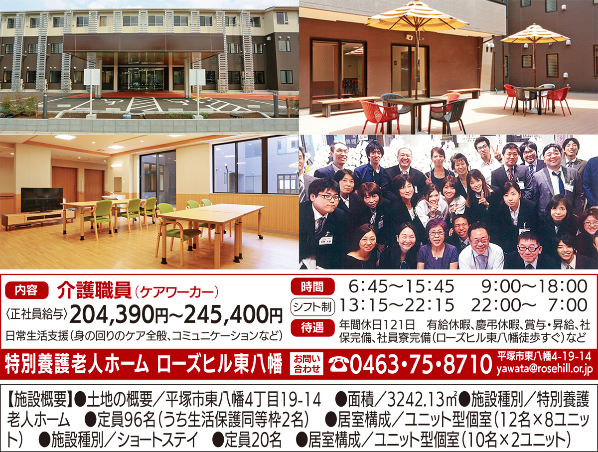東八幡にある特別養護老人ホーム「ローズヒル東八幡」は昨年10月のオープン以来、多くの利用者から好評を博している。