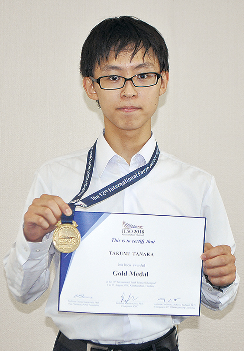地質学や気象学に関する問題で競う同大会。アメリカなど38カ国・地域から139人の18歳以下の学生が出場、知識と考察を測る筆記試験と露頭から地下構造を推測するなど実技試験で順位を決めた。上位10%に金メダルが与えられ、田中さんは3位の好成績を収めた。