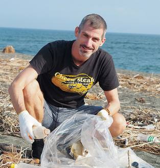 見附町在住の米国人、ゴルマン・タジさん(42)が、2010年から千石河岸の相模川河口付近で海岸清掃に取り組んでいる。大雨や台風が来るたびに大量に打ち上げられるゴミを拾うタジさん。8月に4回、今回の台風24号を受けて10月中にも実施を予定している。「海がきれいだと本当に気持ちいいからね」
