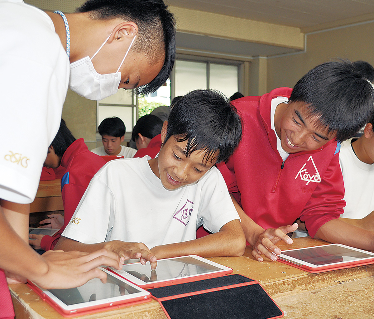 授業を担当した森要教諭(29)は「提出物を一括管理できたり板書の作業が減ったりとメリットがある」と喜ぶ。