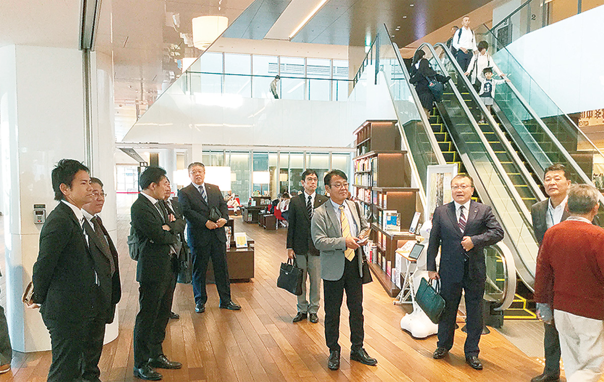 公共施設の先進事例を学び、平塚市が進めている見附台再開発へ意見していきたいと企画。視察には商議所関係者や市議ら21人が参加した。