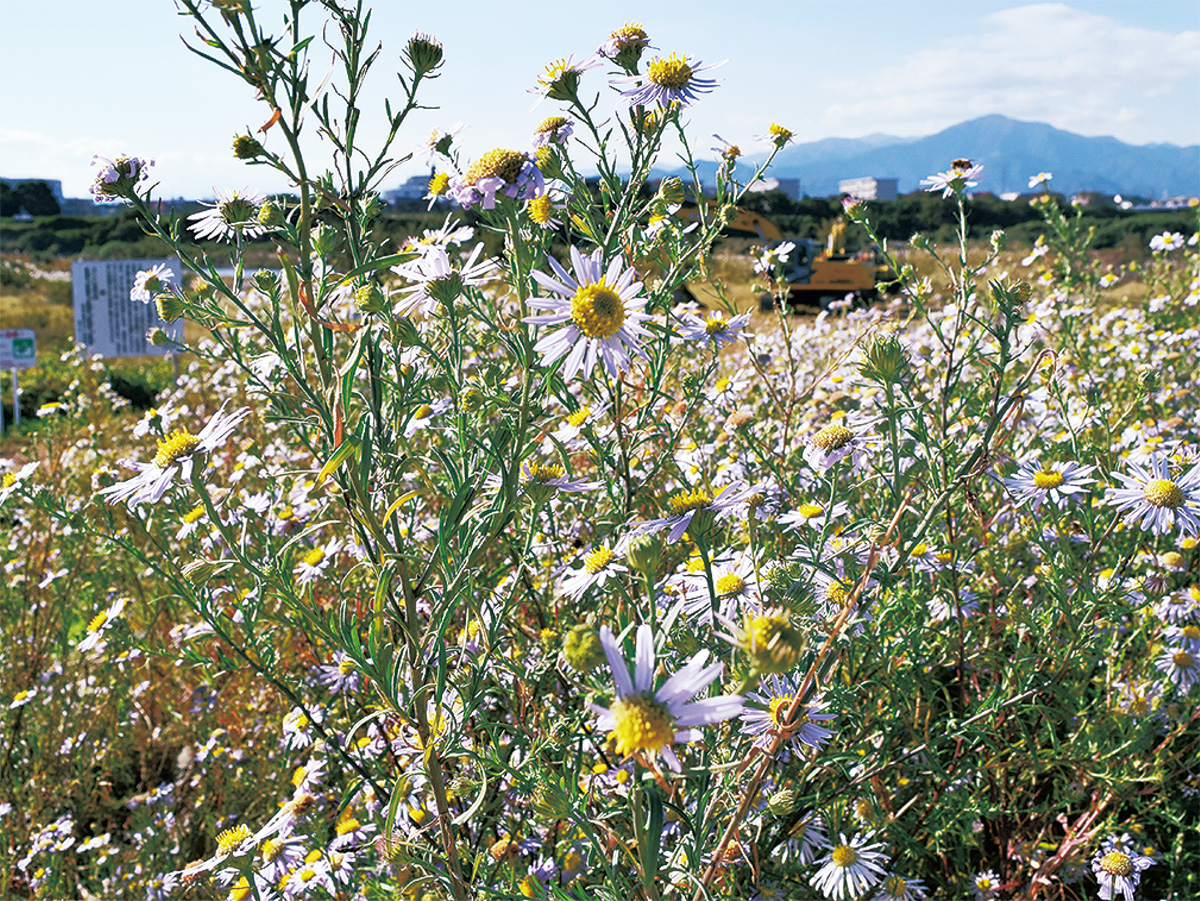 河原環境の変化などにより絶滅危惧種に指定されているカワラノギクが、相模川の神川橋近くの圃場で見頃を迎えている。この圃場は「桂川・相模川流域協議会」が管理しており、11月中旬まで花を楽しめそうだ。