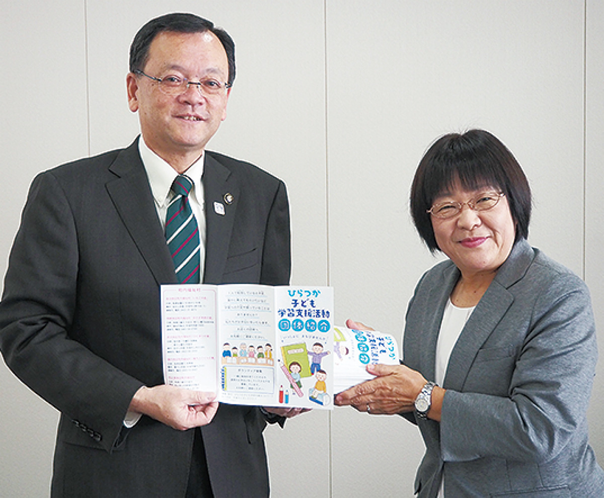経済的理由などで家庭学習が難しい小中高生に無償で学習支援を行う市民団体が連携し情報交換する「ひらつか子ども学習支援ネットワーク」(大野文代表)が11月26日、市役所を訪れ、落合克宏市長にリーフレットの発行を報告した。