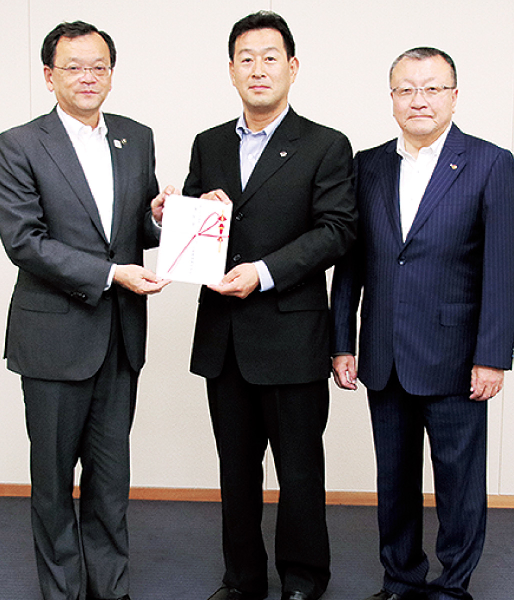 同社は、地元の一大イベントを応援しようと毎年寄付をしている。落合市長は「善意に感謝いたします。大切に使わせていただきます」と話した。
