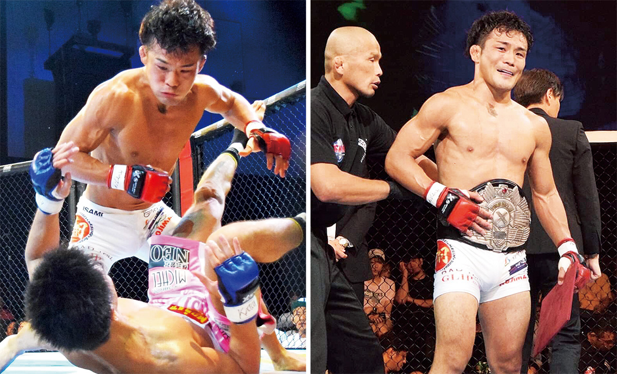 市内在住のプロ格闘家、翔兵選手(33)=本名・升水翔兵=が7月21日、総合格闘技団体パンクラスの主催大会「PANCRASE307」(東京・スタジオコースト)で、フライ級の暫定王者を決めるタイトルマッチに挑み、悲願のベルトを勝ち取った。