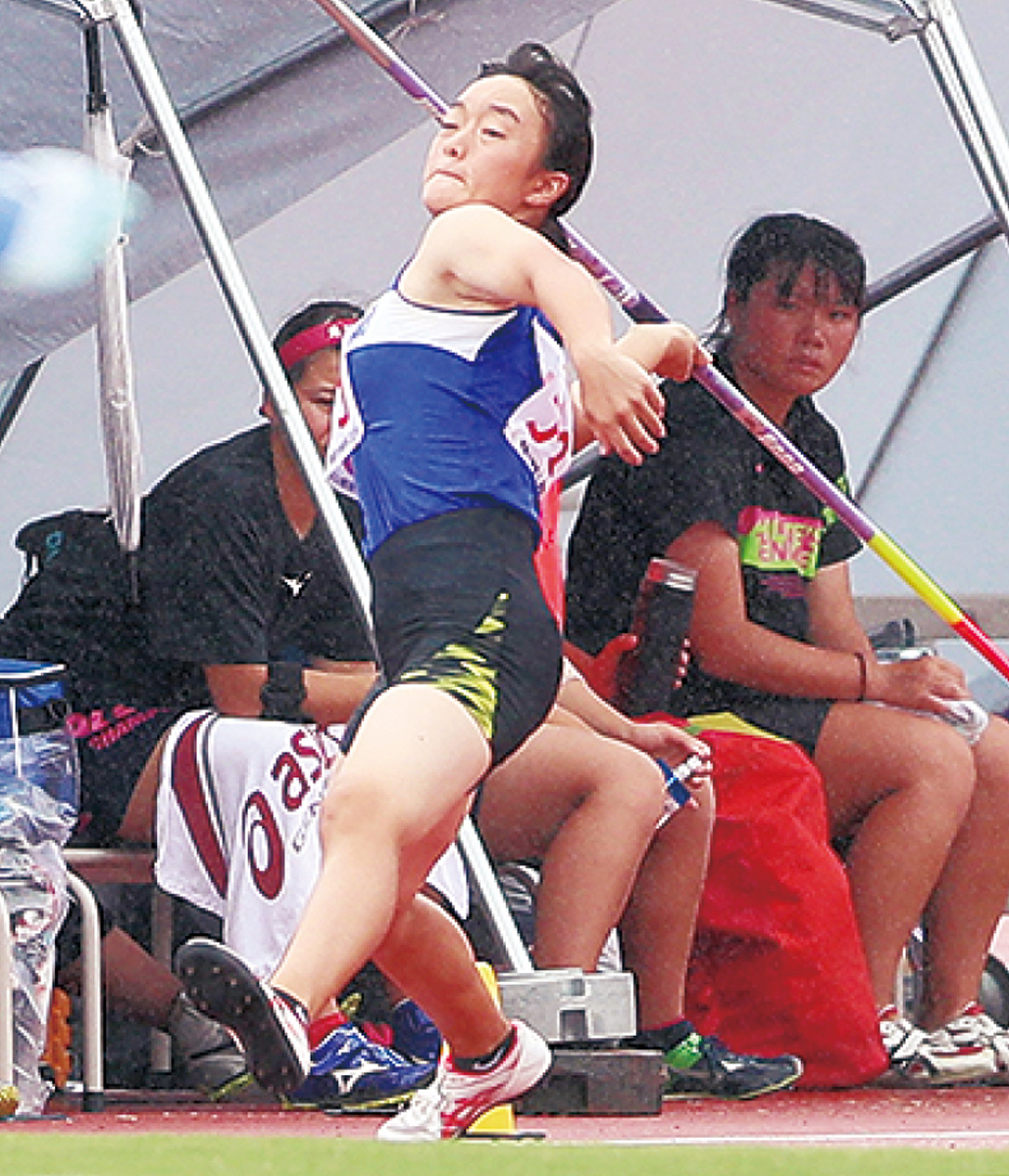 やり投の上野さんは、「自己ベストを8cm伸ばせば決勝ライン(45m)」と勇んだが、強風にもあおられ、41m73で決勝進出は叶わなかった。ただ、試合後は「ベストも出ず決勝も逃したけど、今までで一番楽しかった」と晴れやかな表情を見せた。昨年付き添った先輩からも大会前にエールをもらったといい、「平学は投てきで8年連続で全国出場。後輩にもつないでほしい」と願った。