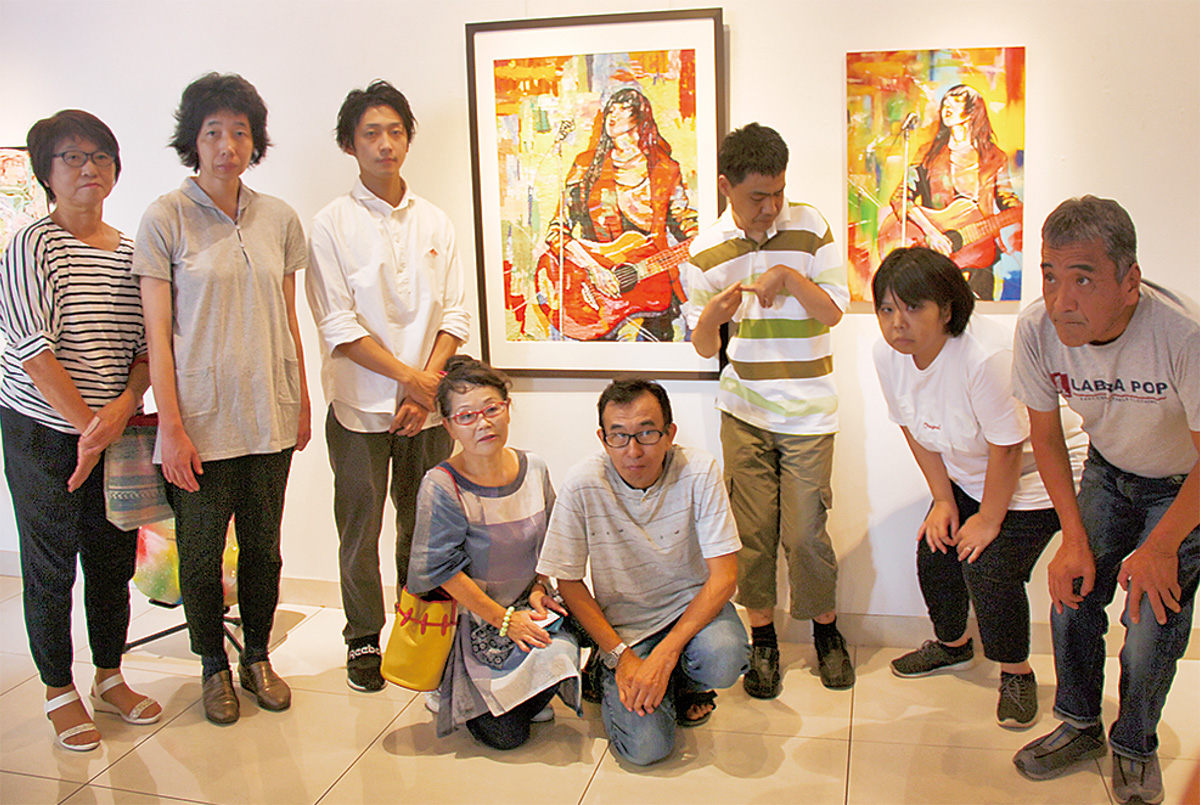 音楽をテーマに、障害のある人たちが制作した美術作品が並ぶ同展。趣旨に賛同し、アクリル画を描き下ろした画家・Rio.Nakanoさん(30)らが招かれ、21日、開会式が開かれた。