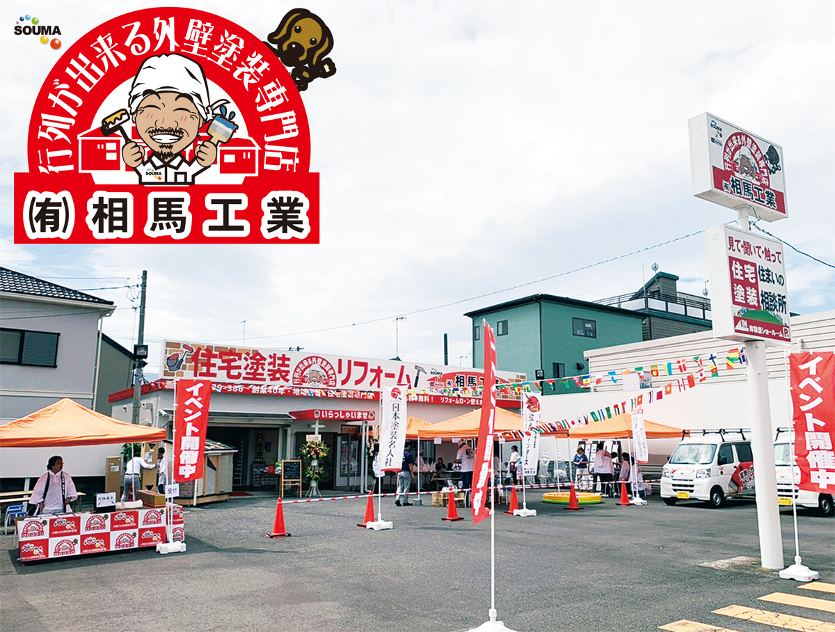 年間150棟の施工実績と「営業ご法度」の外壁塗装セミナーで知られる(有)相馬工業は、マックスバリュ平塚河内店の敷地内にショールーム(=写真)をオープンした。