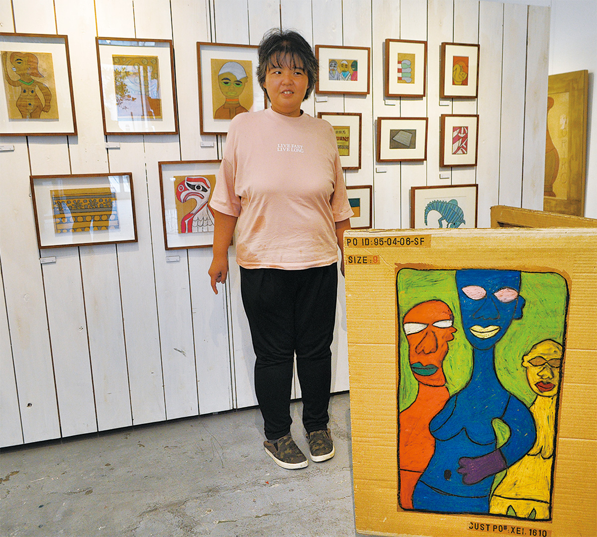 ギャラリーでの初の個展に「ありがとう」と笑顔を見せていた。