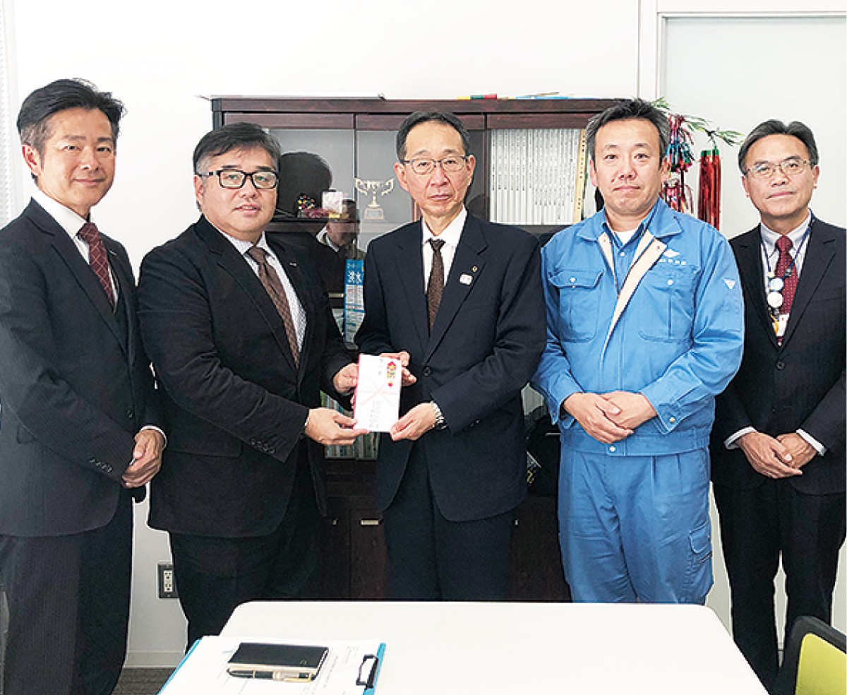 市内大島の建設業(株)甲斐組(今村佳広代表)は6日、同社が開催したチャリティイベントの収益10万1500円を災害義援金として平塚市に寄付した。