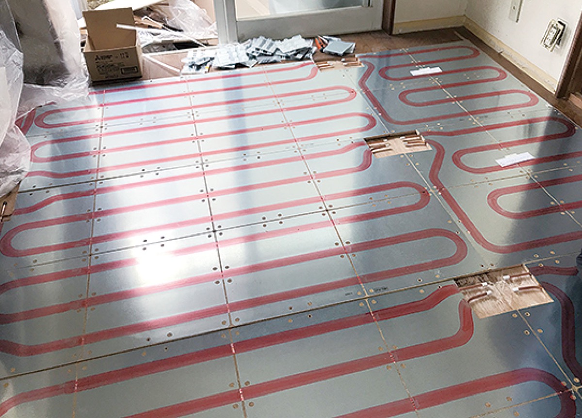 「当社は三菱電機社製のヒートポンプ冷温水システム『エコヌクール』をお勧めしています。電気回路を床に敷くだけの床暖房と違い、回路が複雑で部品も多く、未経験の職人さんでは技術的に難しい工事です。当社の職人会はこの工事に精通した職人がおります。安心してご相談ください」