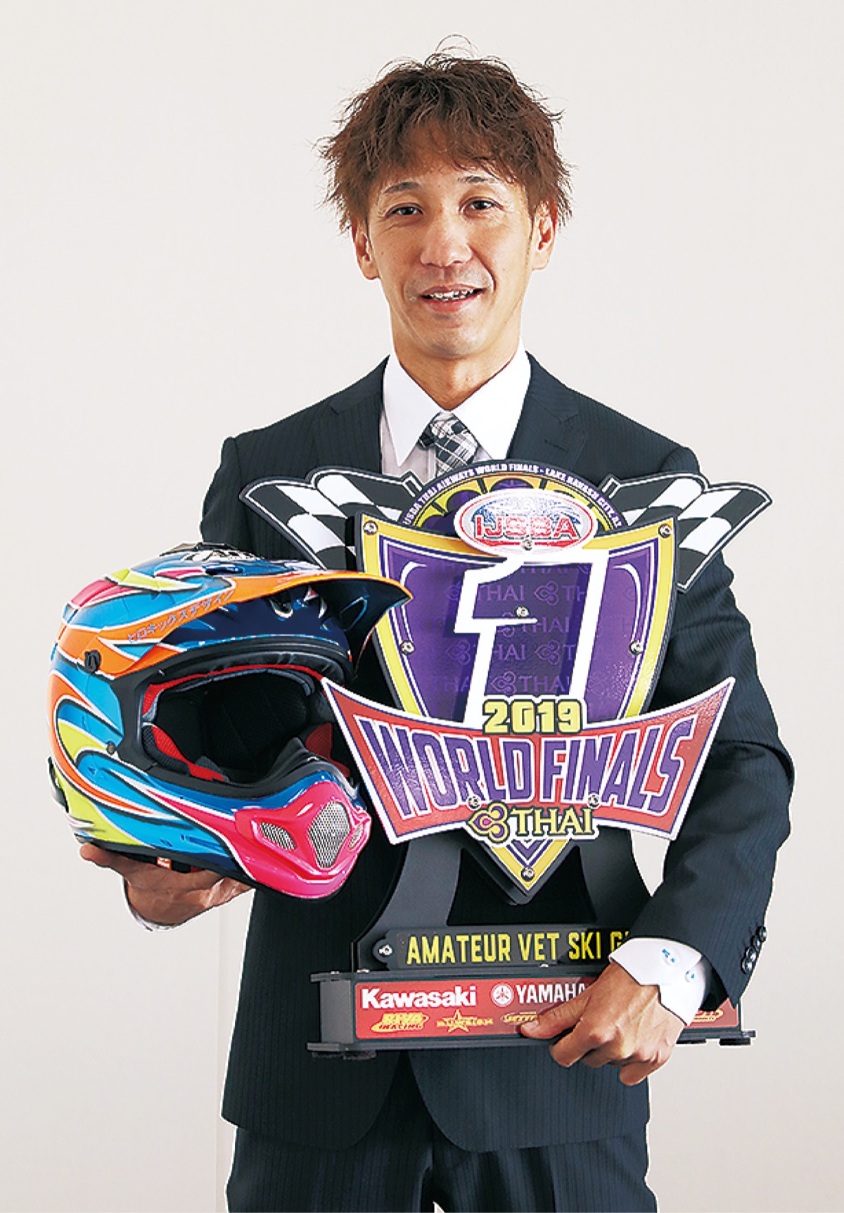 東中原在住の佐々木宏樹さん(41)が、10月に米国アリゾナ州で行われた水上バイクの世界大会「IJSBA WORLD FINALS2019」30歳以上のベテランスキーGPクラスで優勝した。3日、落合克宏市長を表敬訪問し、優勝を報告した。
