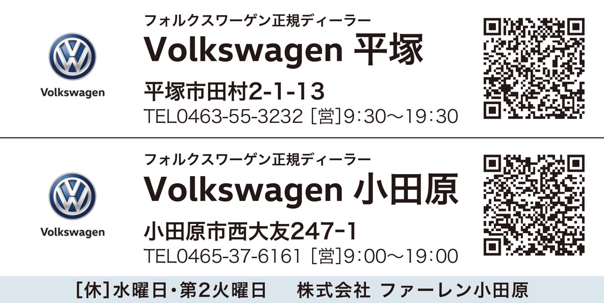 A)フォルクスワーゲン平塚 B)フォルクスワーゲン小田原
