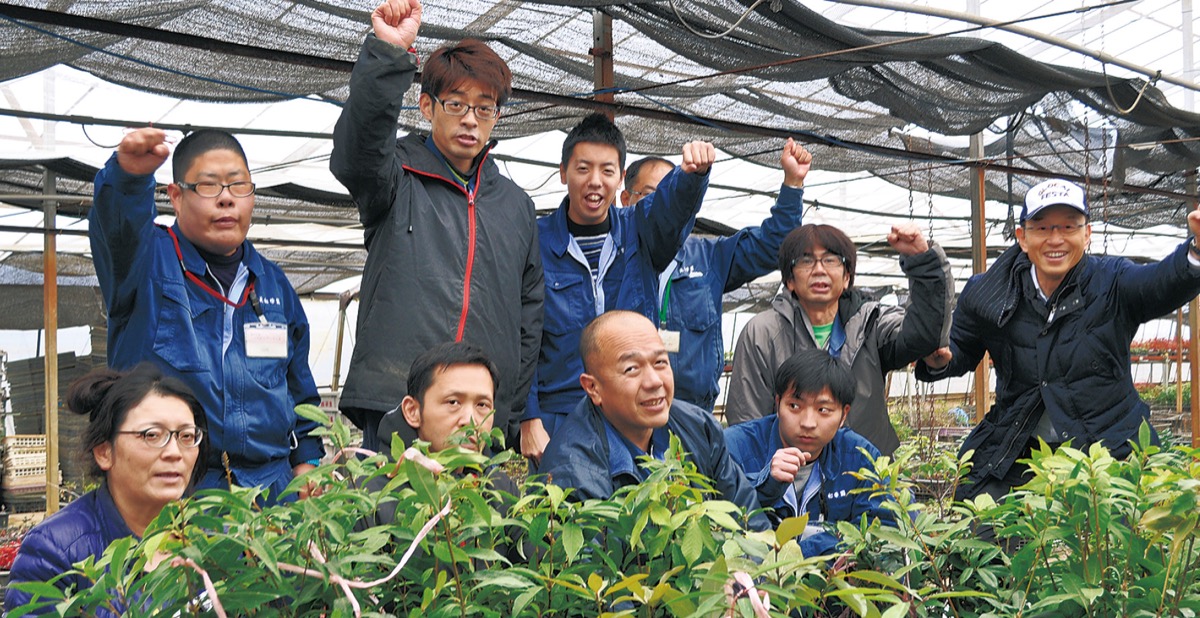 「2、3年かけて育てた苗が出荷されるのが、皆の一番のやりがいです」と支援員の山口毅さん。進和学園では今後も緑化活動を推進し、環境保全や利用者の就労機会の充実に努めていく。