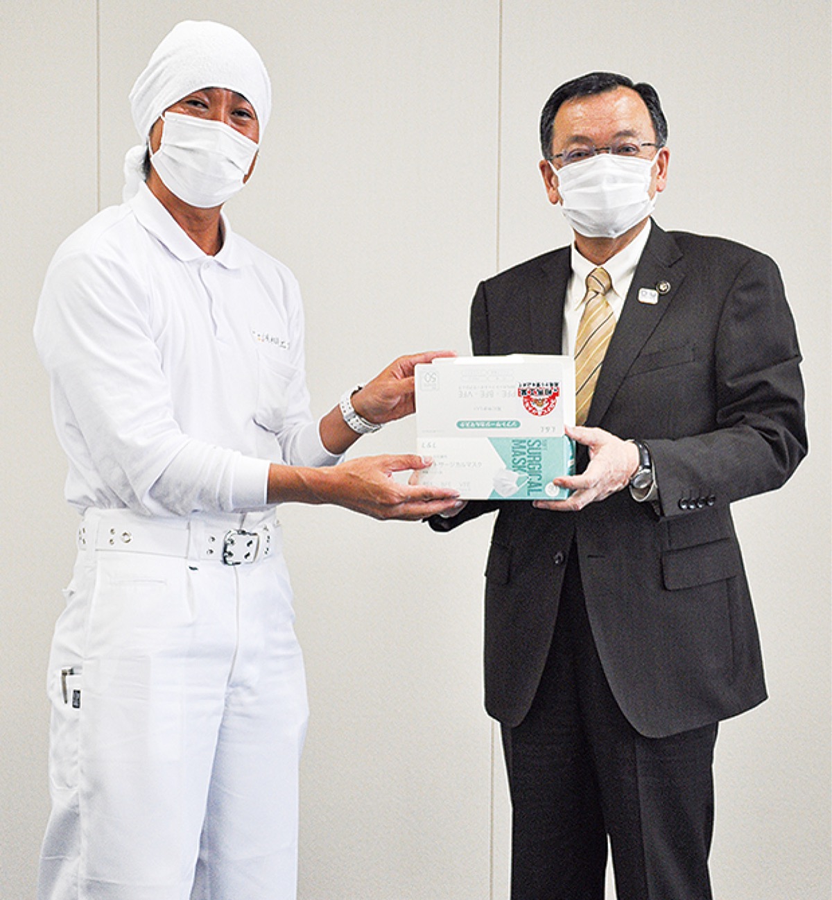 新型コロナウイルス感染症から保育士を守ろうと、外壁塗装会社の有限会社相馬工業(相馬純代表)が22日、平塚市に使い捨てマスク1625枚を寄贈した。