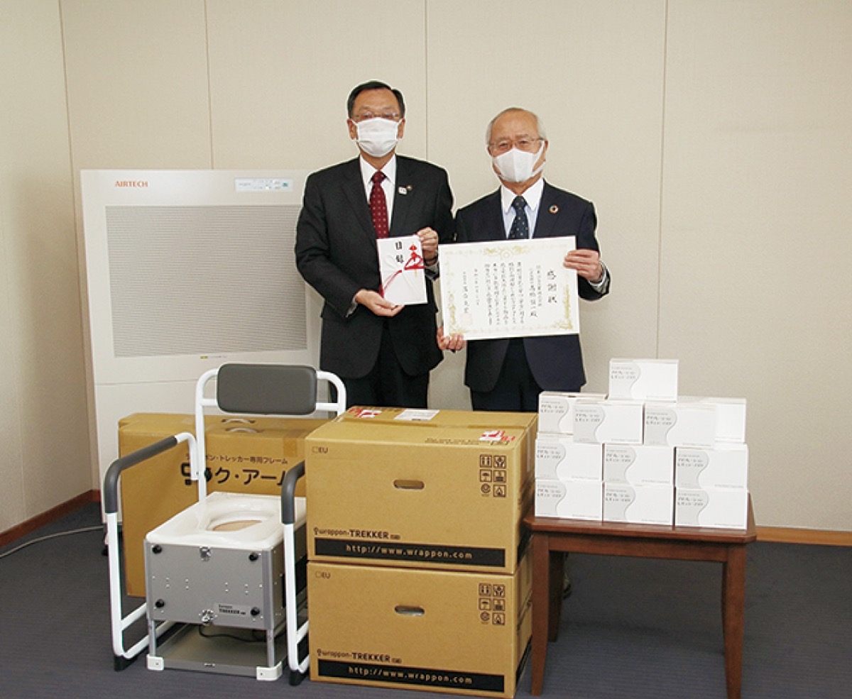 関東冶金工業株式会社(四之宮3の20の48、高橋愼一代表取締役社長)は4月24日、新型コロナウイルス感染症対策の一環で、市民病院や放課後児童クラブに関連備品一式を寄贈した。