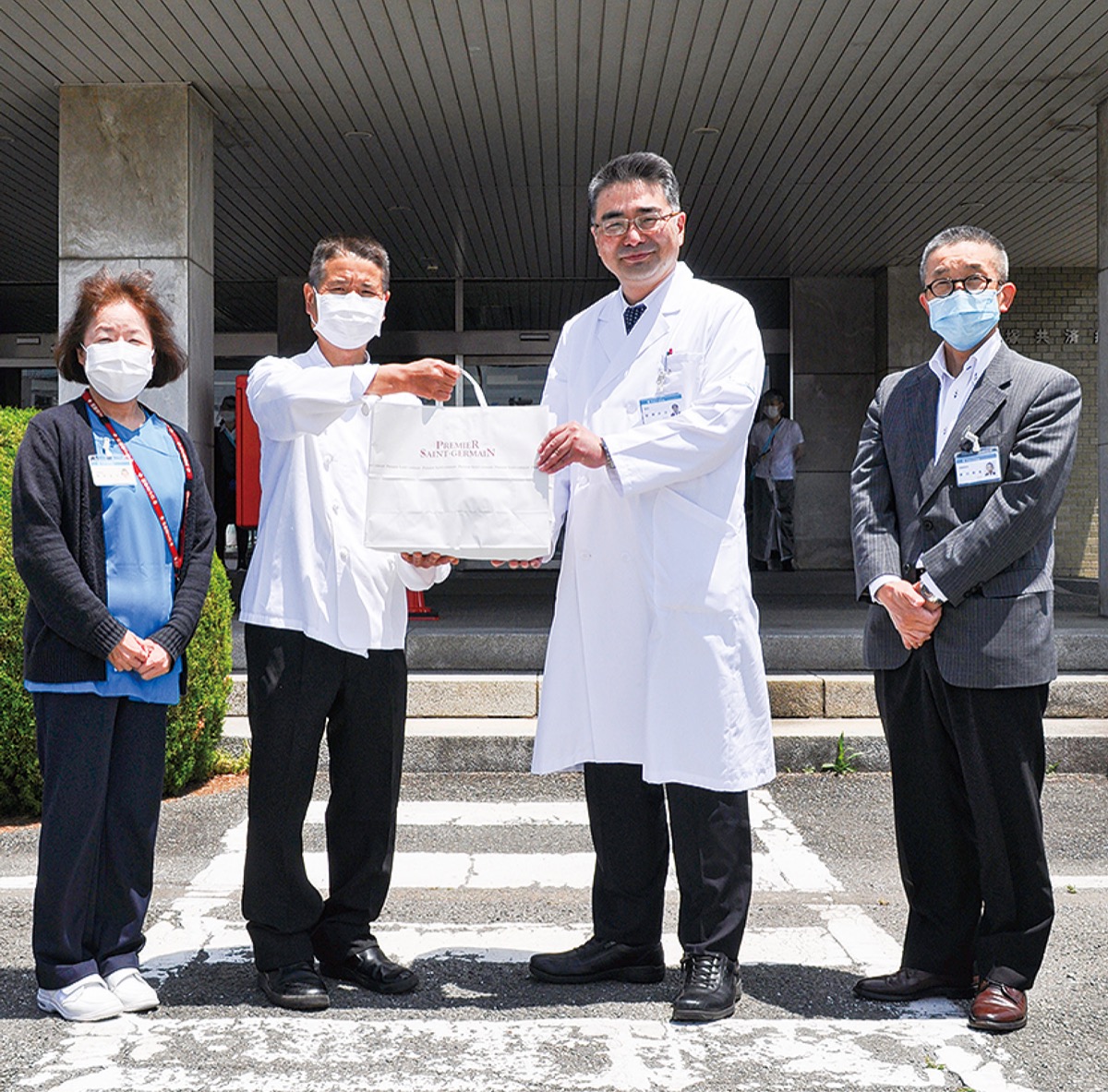 最前線で新型コロナウイルスに向き合う医療従事者を激励しようと、インストアベーカリー「サンジェルマン」(宝町・芥川英幸店長)が22日、平塚共済病院(追分・稲瀨直彦病院長)にスイーツを贈呈した。