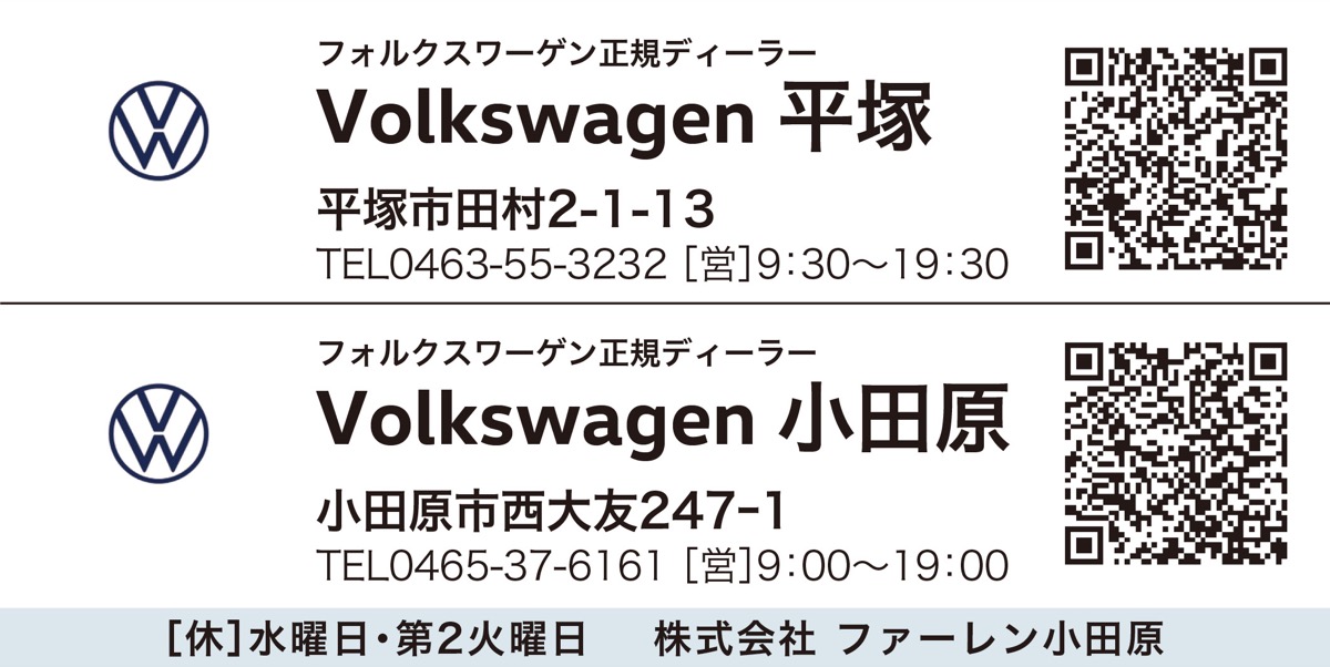 A)フォルクスワーゲン平塚 B)フォルクスワーゲン小田原