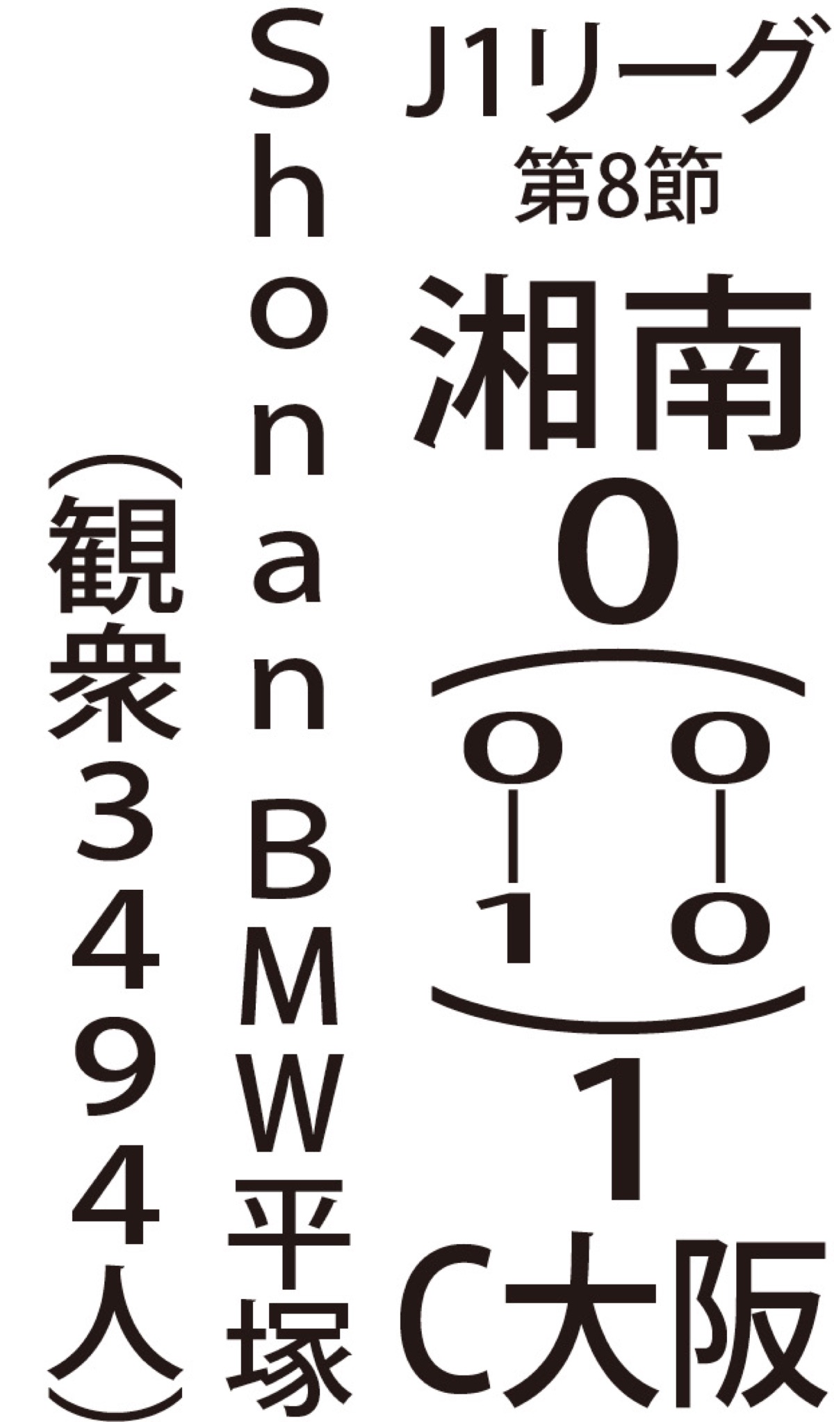 湘南ベルマーレのJ1リーグ第8節は1日、ホームにセレッソ大阪を迎え、0対1で敗れて最下位に転落した。