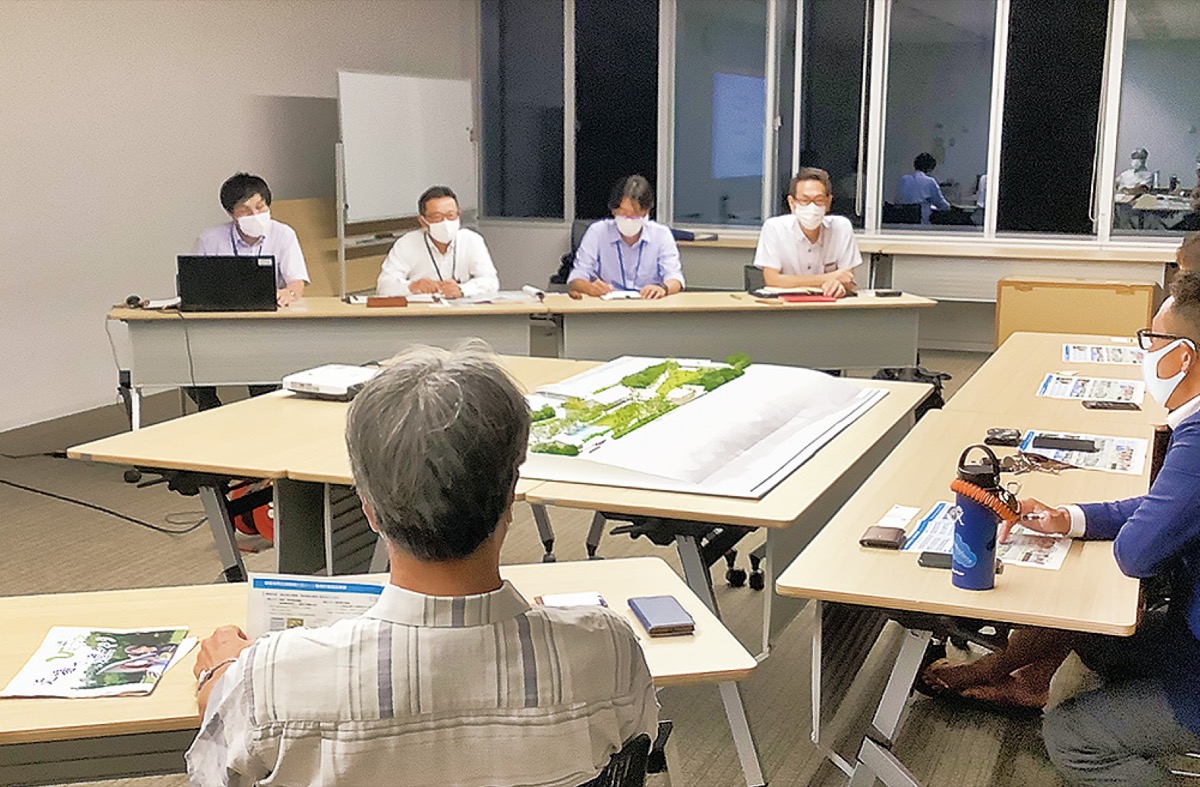 開催初日の6日は市民ら5人が参加。同事業の代表企業の積水ハウス(株)担当者と、みどり公園水辺課職員が出席し、事業説明をするとともに、市民からの質疑に答えた。