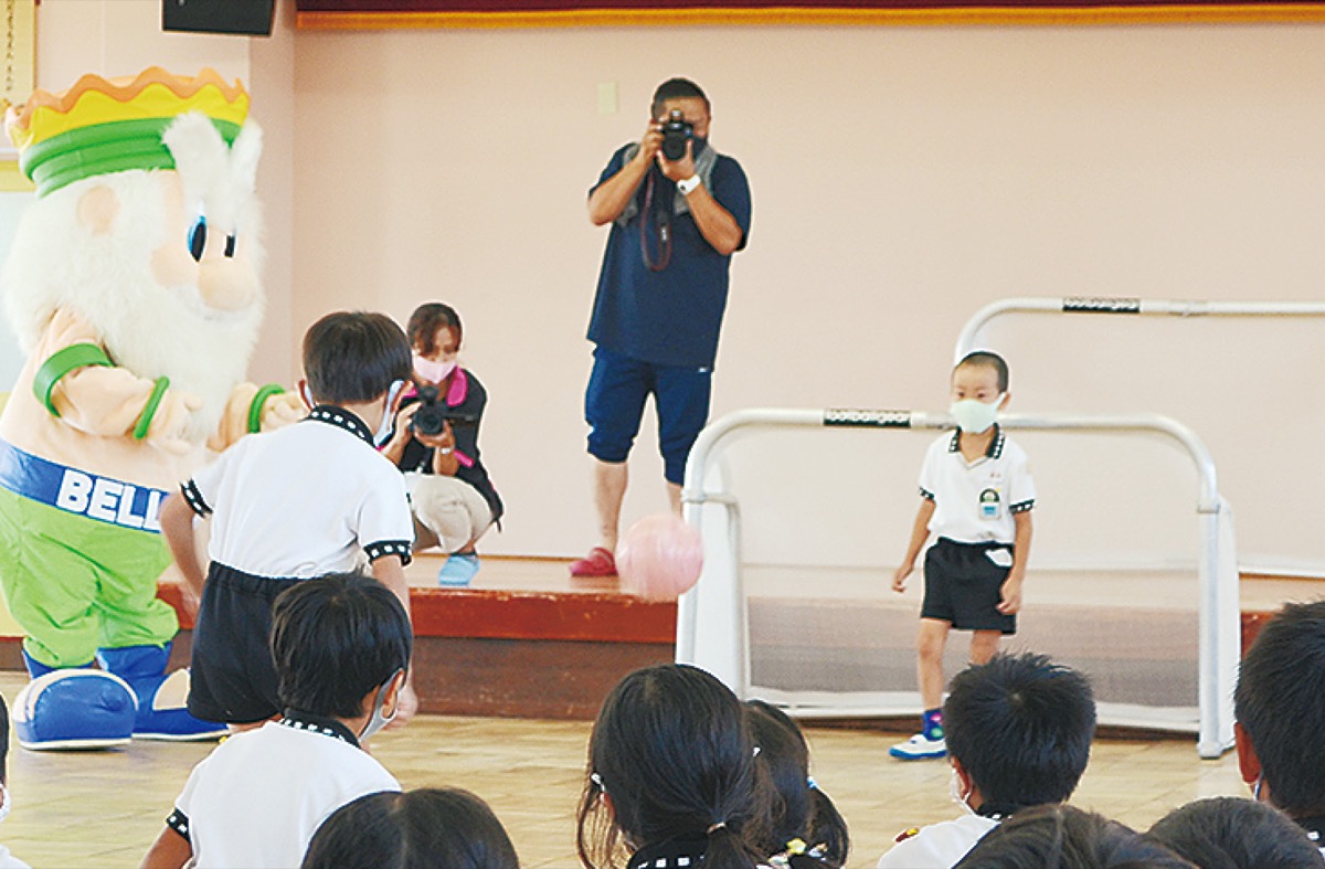 セレモニーには平塚市サッカー協会の片倉章博会長らが出席。毎年2月にクラス対抗のサッカー大会を開催している年長組の園児らに「将来ベルマーレや日本代表になれるよう、このサッカーゴールでたくさん遊んでください」と呼びかけた。
