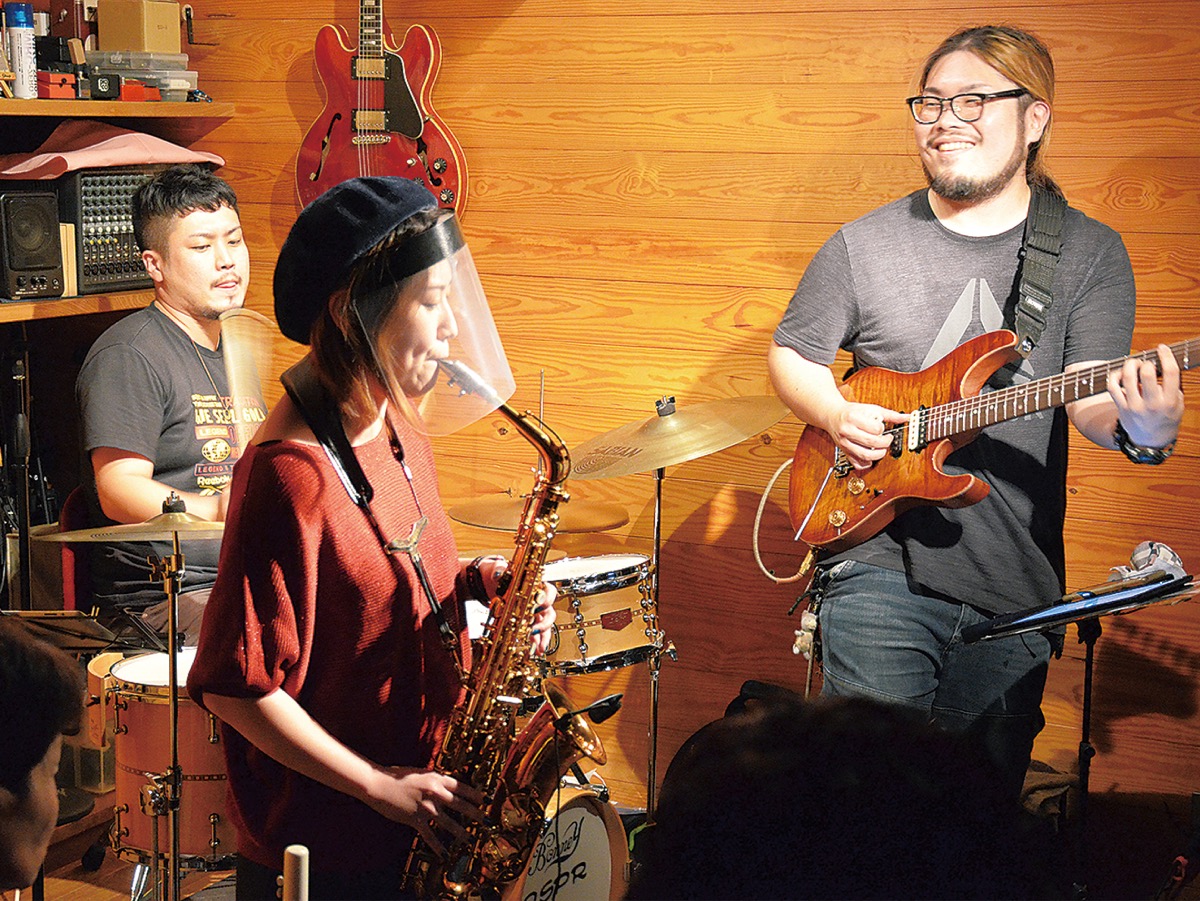 平塚出身で血縁関係のある3人組インストバンド「笹本兄妹」が9月25日、八重咲町のライブバーWood Shopで観客10人限定のライブを行った。地元平塚では、およそ8カ月ぶりとなる公演で、3密回避、検温、換気などコロナ対策が徹底された。