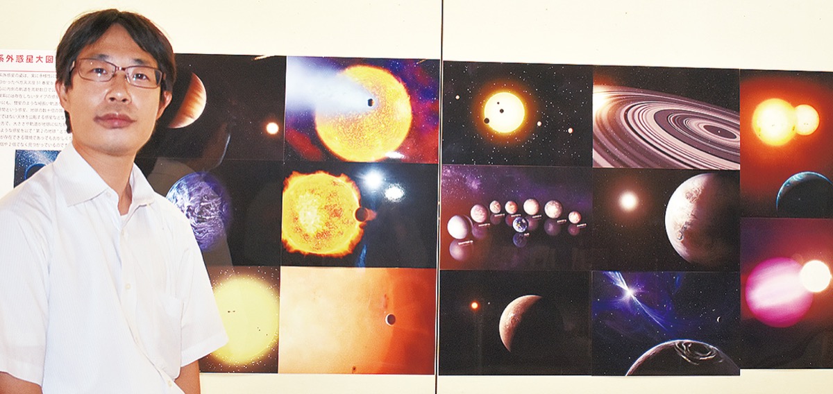 「地球に似た惑星で生き物が生きられるのかを知る手掛かりになれば」と学芸員の塚田健さん(38)。展示を見た来館者に「夜空をふと見上げた時に自分が見ている星周辺の惑星に生き物がいるのではと思い起こしわくわくしてもらえればうれしい」と話した。