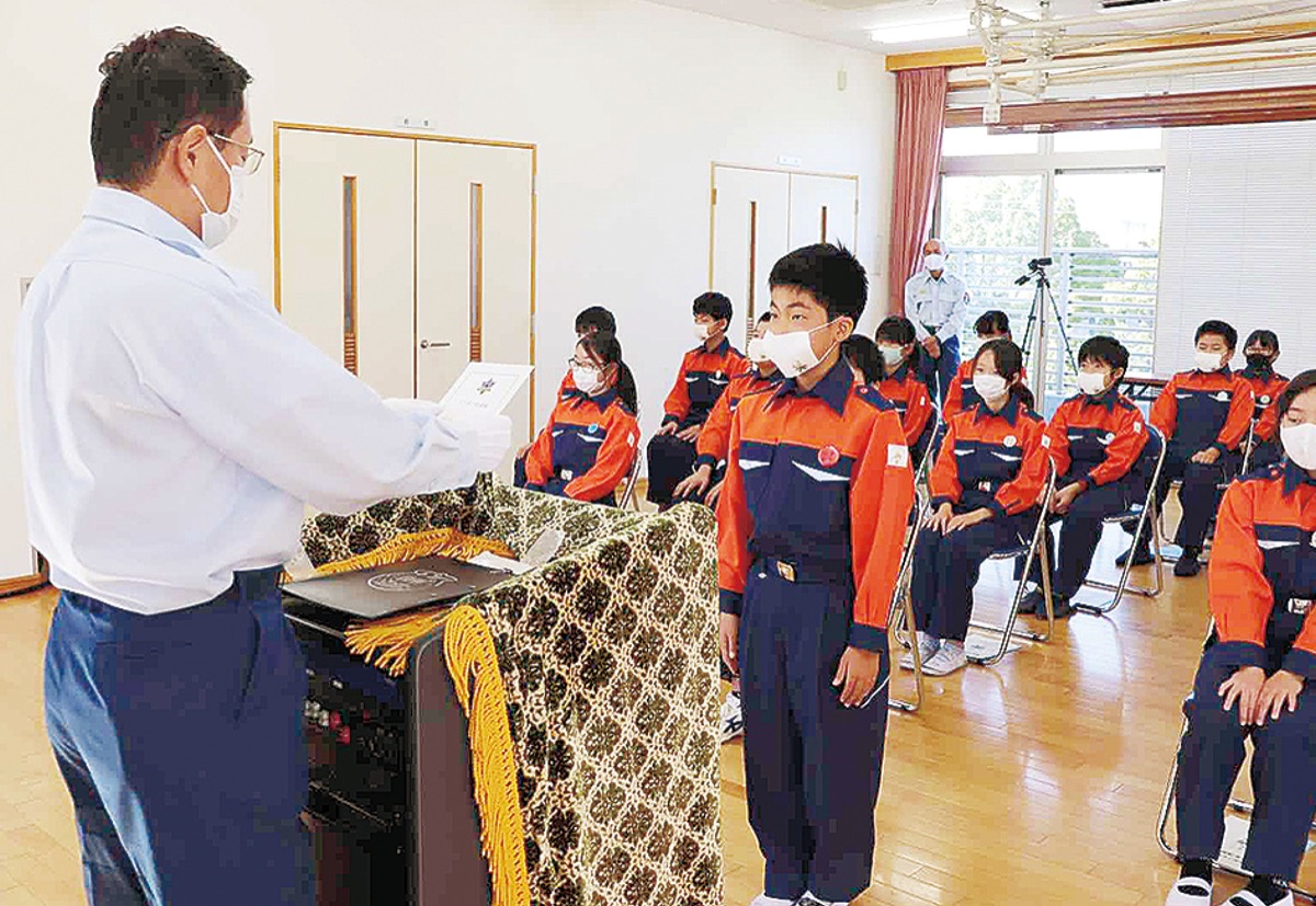 平塚市少年消防クラブの結成式が10月25日、大野出張所で挙行された。例年4月に行われるが、新型コロナの影響で延期されていた。