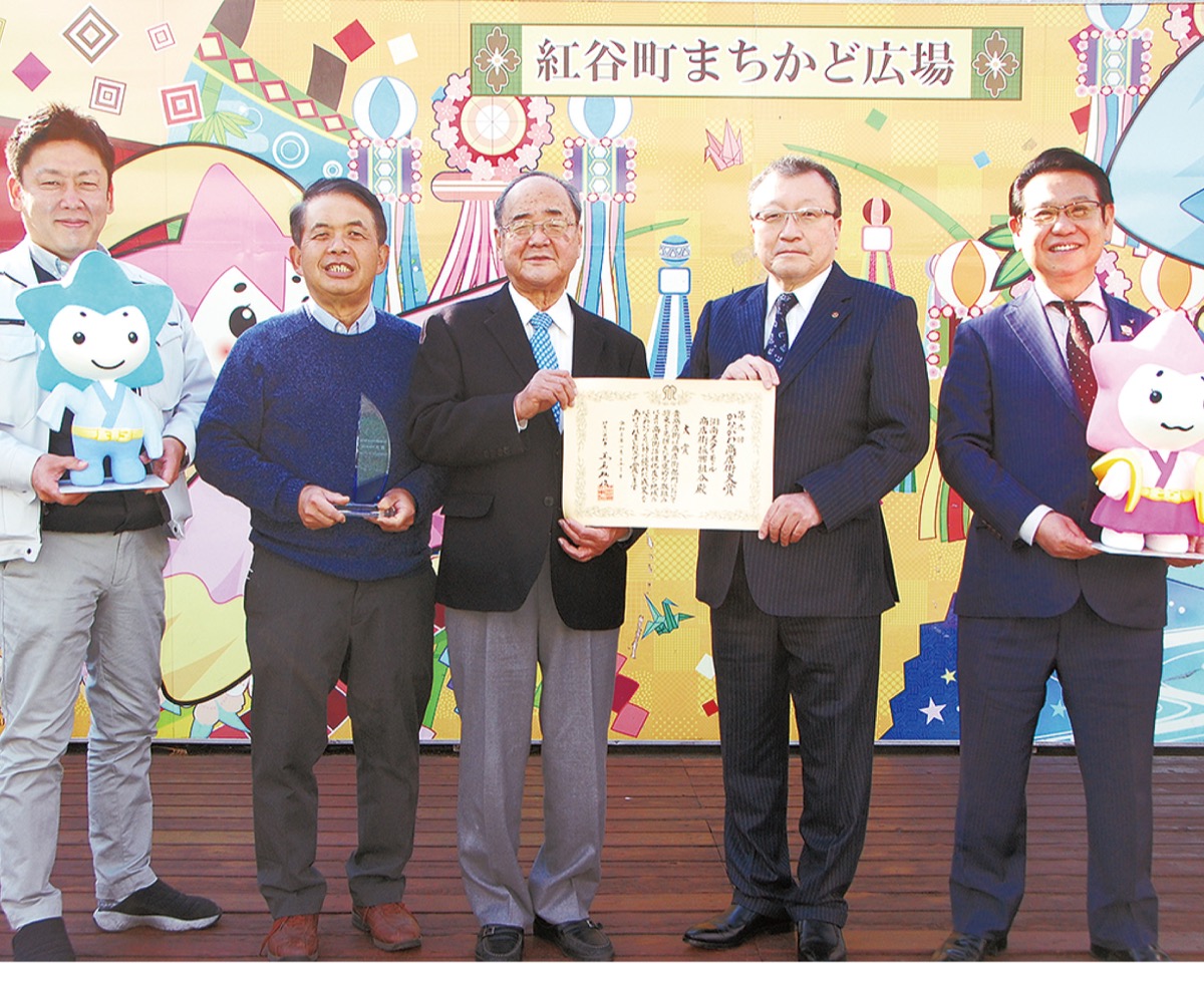 1月22日に紅谷町の事務所で、商連かながわの升水一義会長からスターモール商店街の常盤卓嗣理事長に表彰状が手渡された。例年は県知事らの授与式があるがコロナで見送られた。