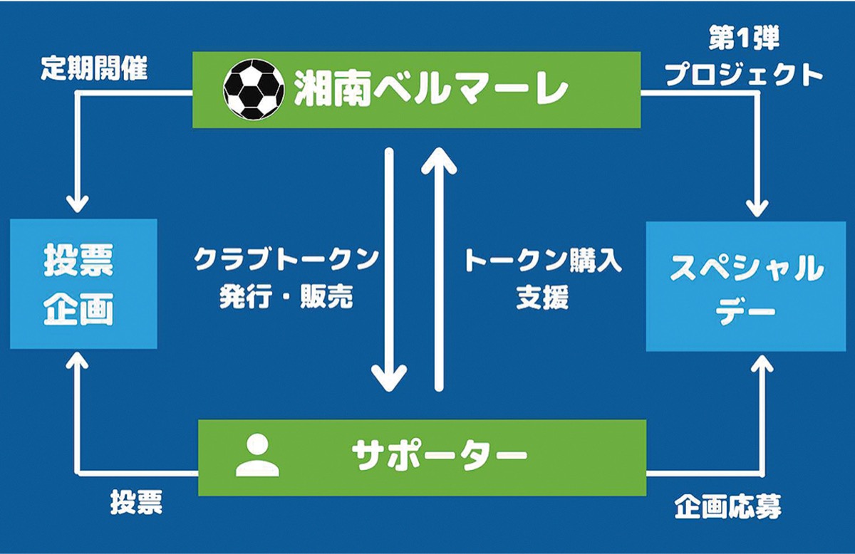 トークンとは、ベルマーレが発行と販売を担い、サポーターが購入してクラブを支援するもの。ポイントのように複数の購入、保有が可能という。購入者が増えると価値が上昇することもあり、ファンが継続的に応援するモチベーションにもなるとして、欧州のプロスポーツチームで導入が進んでいる。