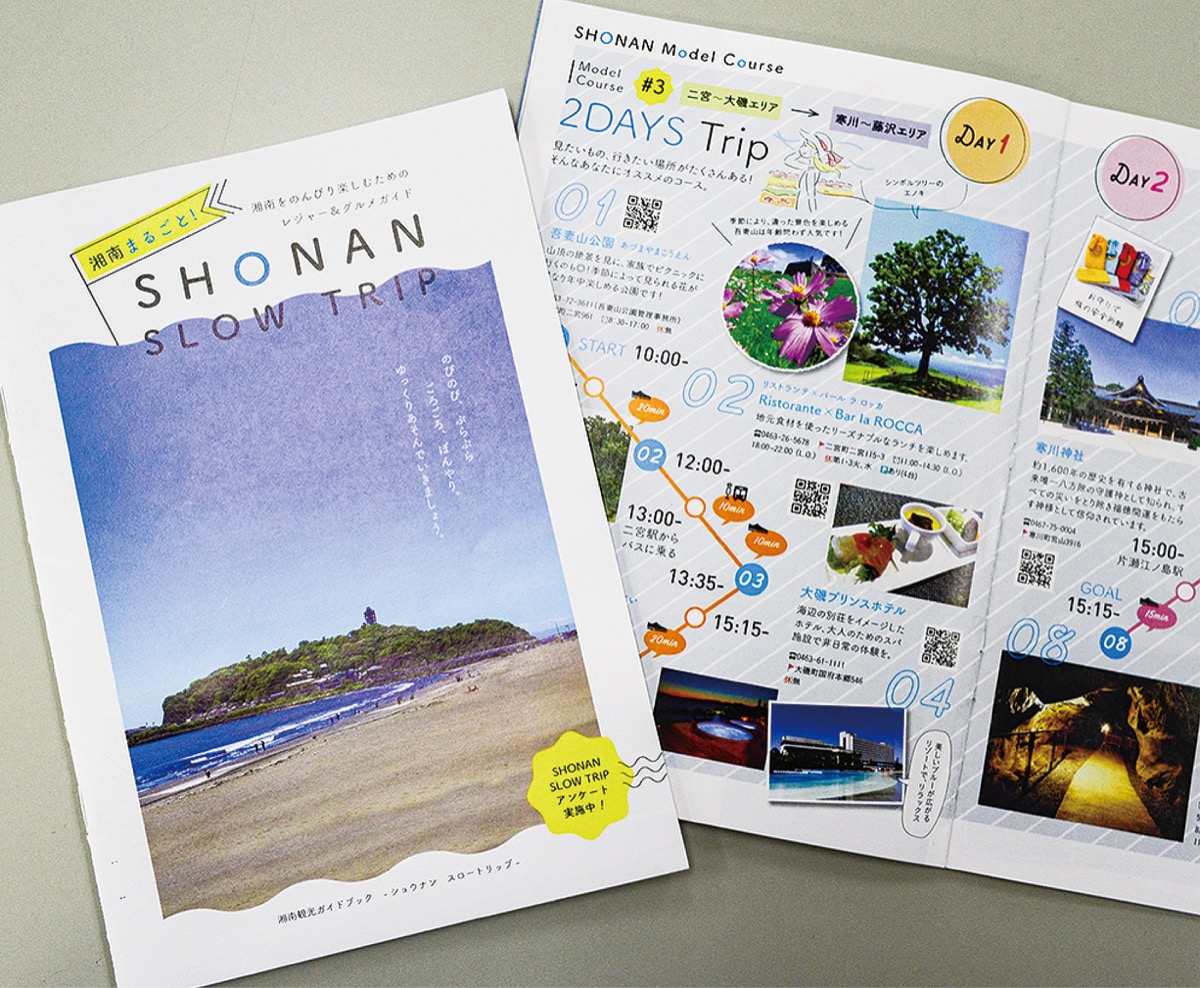 湘南エリアの観光名所や穴場をのんびり楽しんでもらおうと、ガイドブック『SHONAN SLOW TRIP』を湘南地区観光振興協議会が発行した。遠出や県境をまたぐ旅行がしづらい今、地域住民も湘南の魅力を再発見するのに役立つ情報を盛り込んでいる。