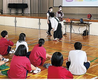 江陽中学校(守屋勝教校長)の3年生205人を対象にした認知症を学ぶ出前講座が2日、同校体育館で行われた。