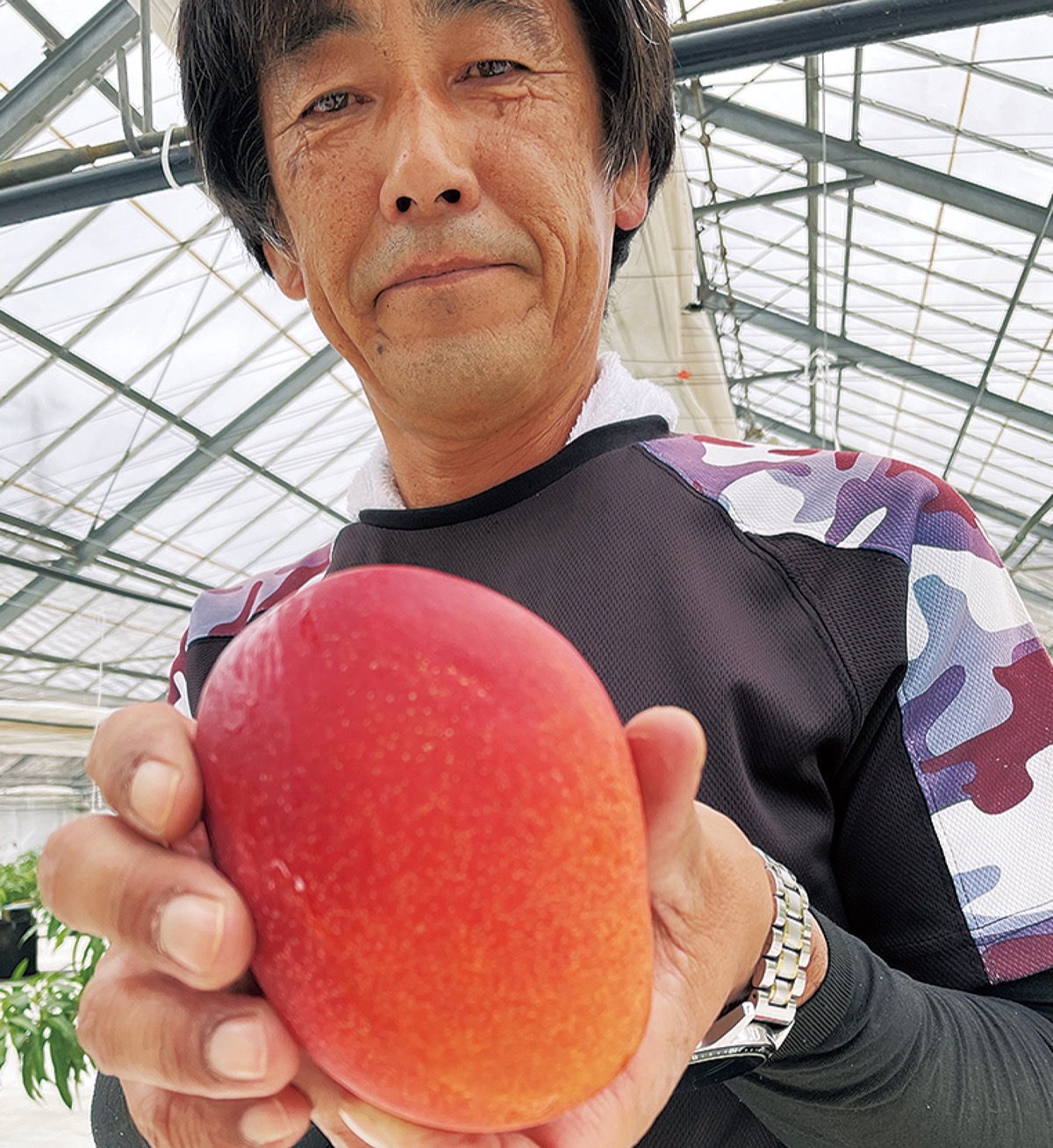 徳延にある臼井園芸では現在、同社代表の臼井秀企さん(57)がオリジナルブランドとして育てる「湘南マンゴー」が収穫期を迎えた。