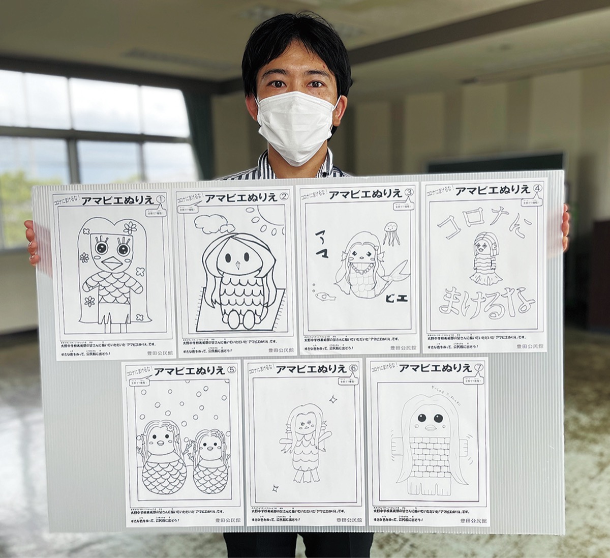 アマビエぬり絵は、豊田小学校や中原保育園、子育て支援センター、福祉村などに協力を要請。色とりどりの作品が寄せられている。8月18日まで作品を募集中で、用紙は豊田公民館で配布しているほか、Web(ちいき情報局)からダウンロードも可。小澤さんは「なるべく多くの地域の方に参加してもらいたい。目標は300点の作品」と呼び掛ける。