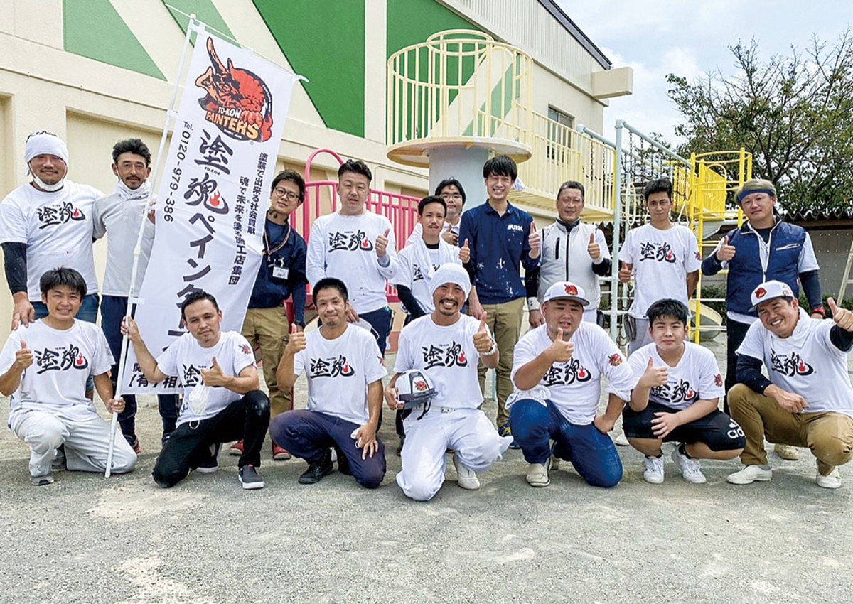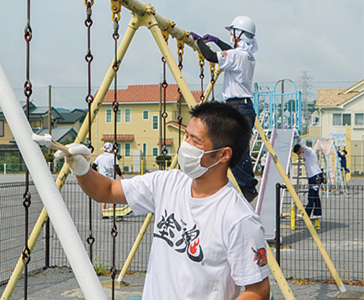 全国規模の塗装業者によるボランティア団体に属する「神奈川塗魂(とうこん)ペインターズ」(相馬純神奈川長)が8月24日、市立松延小学校の遊具の塗装ボランティアを行った。
