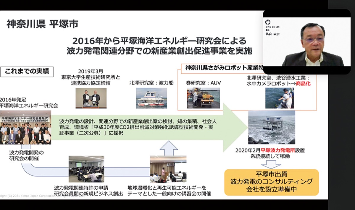 市では、波力発電分野での新産業創出と地域活性化を図ろうと、2016年に産官学による「平塚海洋エネルギー研究会」を発足。平塚新港沖で波力発電所の実証実験を続けている。