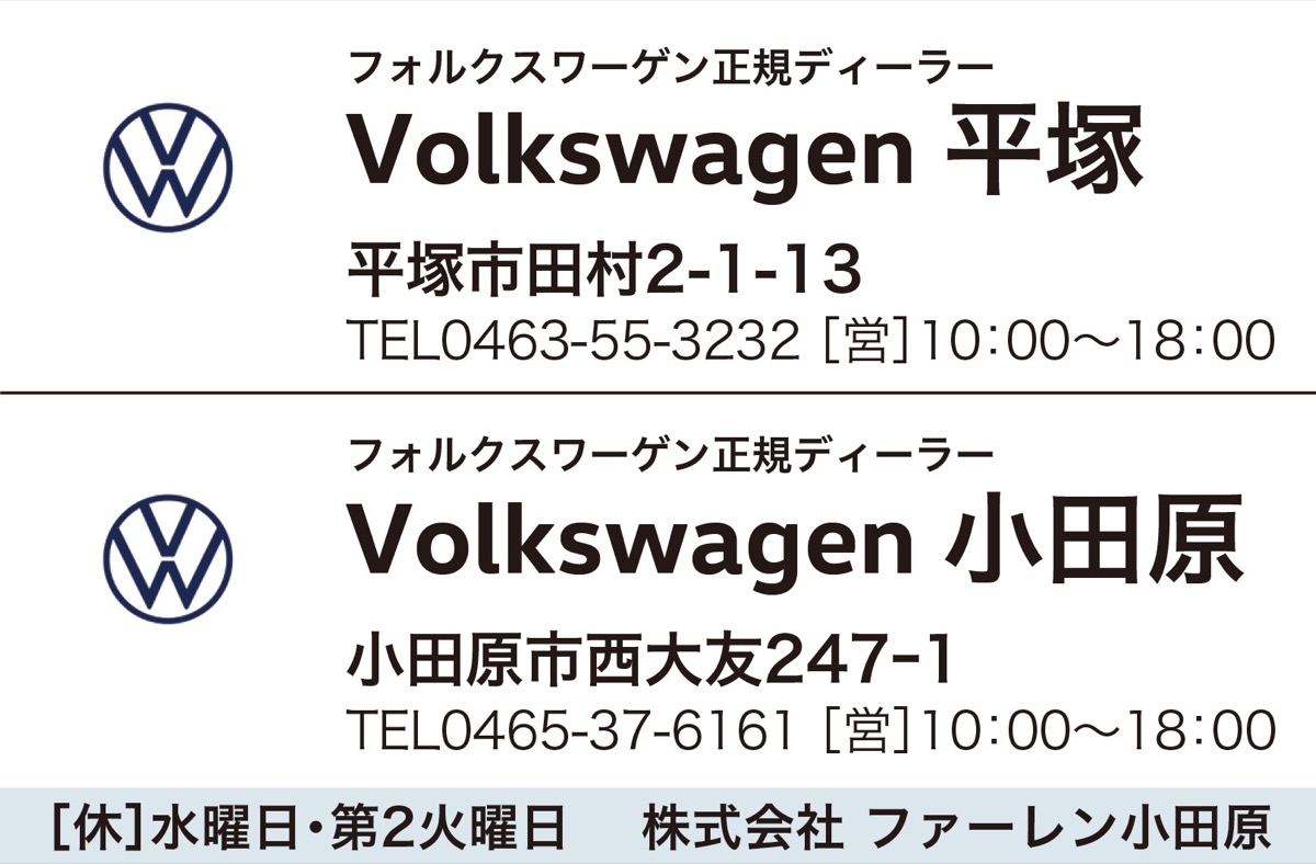 A)フォルクスワーゲン平塚 B)フォルクスワーゲン小田原