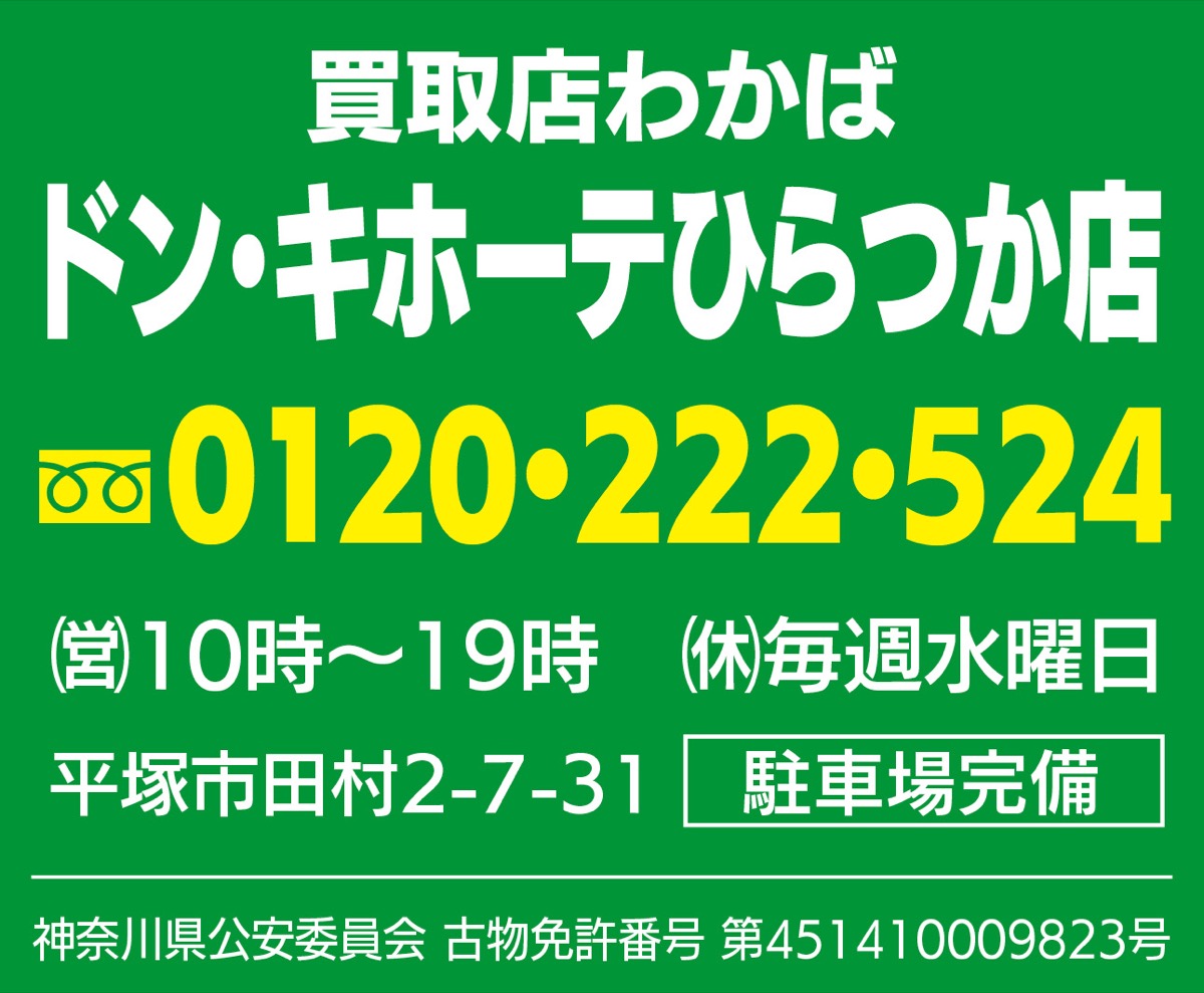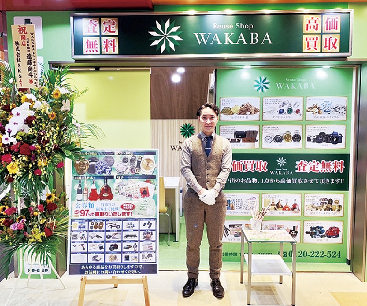 全国100店舗以上を展開する「買取店わかば」。9月10日に平塚田村のドン・キホーテ1階に新店がオープンした。