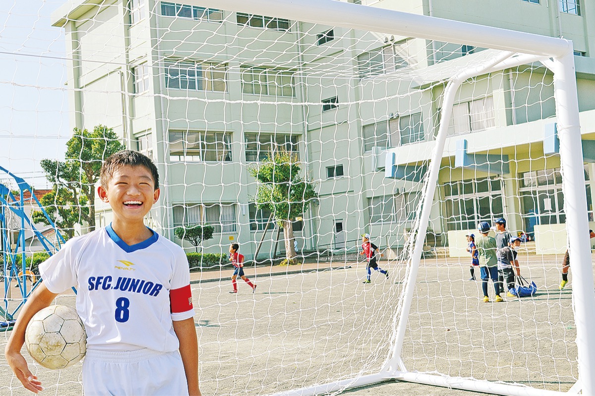 ゴールが設置されることを聞いたとき、真っ先に「早く蹴りたいと思った」という。設置当初、小学校の休み時間は緊急事態宣言中で遊べる場所が割り振られていたため、校庭で友人とサッカーゴールを使ったのは宣言解除後だった。「皆がゴールを使っているのを見てうれしかった」と笑顔で話す。