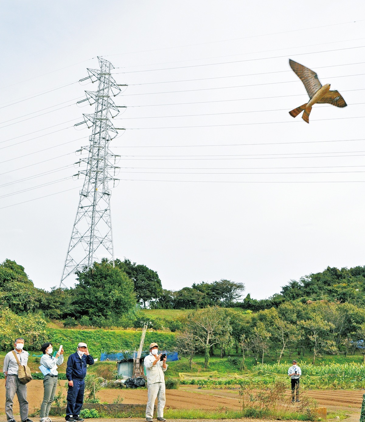 カラスなどによる農作物や家畜の鳥獣被害がある土沢地区の有限会社浜田牧場(浜田昌伯代表)で10月19日〜22日、株式会社建設環境研究所が開発した、害鳥を追い払う「鳥型ロボット」の実証実験が行われた。