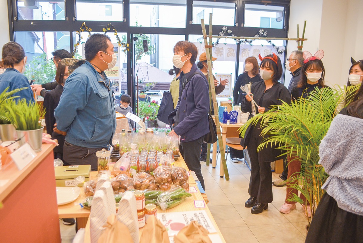 平塚農商高校のマーケティング部(永瀬徹指導教諭)がコロナ対策を念頭にプロデュースする小規模イベント「みんなのマルシェ」が10月31日、まちなかベースきちきちで初開催され約100人の来場者でにぎわった。