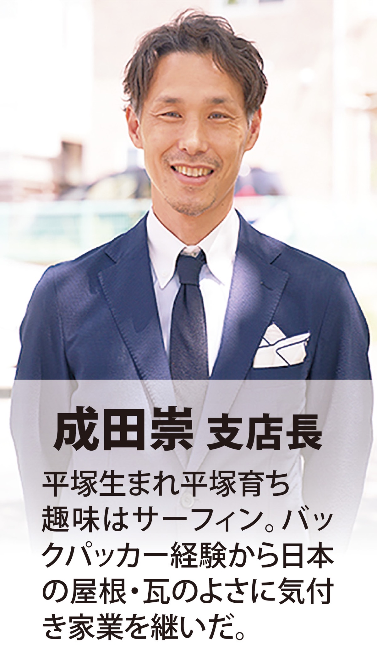 「屋根点検は10年に1度が目安です」と話すのは1937年創業の「成田屋商店」の成田崇支店長。修理の度合いによっては大きな工事になってしまう屋根・天窓は、細かな点検が費用節約にもつながる。「10年以上ほったらかしなら点検を。家という資産を守るためにもお忘れなく」と提案する。ドローン点検なら足場いらずだ。
