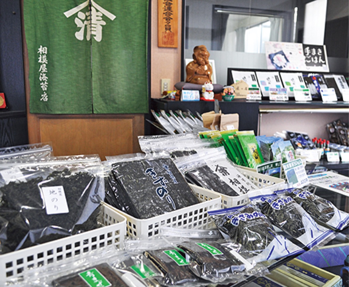 創業60余年の相模屋海苔店は、名産地で競り落とした高級海苔を丁寧に焼き、素材本来の風味を最大限に引き立てる。