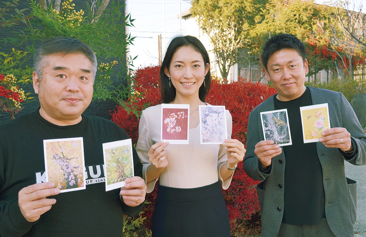 大島の建設業「株式会社甲斐組」がこのほど、市内在住の日本画家・後藤真由美さん(39)の作品が描かれたポストカードを制作。9日、同社を訪れた後藤さんに6枚入り100セットを贈呈した。