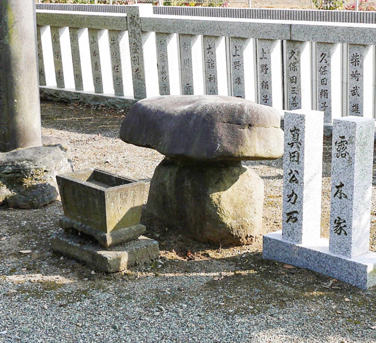 石橋山の合戦で、俣野五郎景久を組み伏せながらも血糊で固まった刀が抜けず討ち取られてしまう悲運の与一は怪力のキャラクターでもあります。舞の演目「夜討曽我」では与一がまだ10代の頃のエピソードが語られています。坂東随一と呼び声の高い力自慢の俣野五郎が大岩を持ち上げて、与一に投げつけようとします。一度は断る与一ですが、三浦の名折れとまで言われれば仕方ありません。投げられた大岩を受け止めて五郎に投げ返し、たまらず五郎が取り落とす、という展開です。石橋山の因縁に繋がる伏線として考えられた話なのでしょう。与一の強さが後日の悲劇を際立たせます。