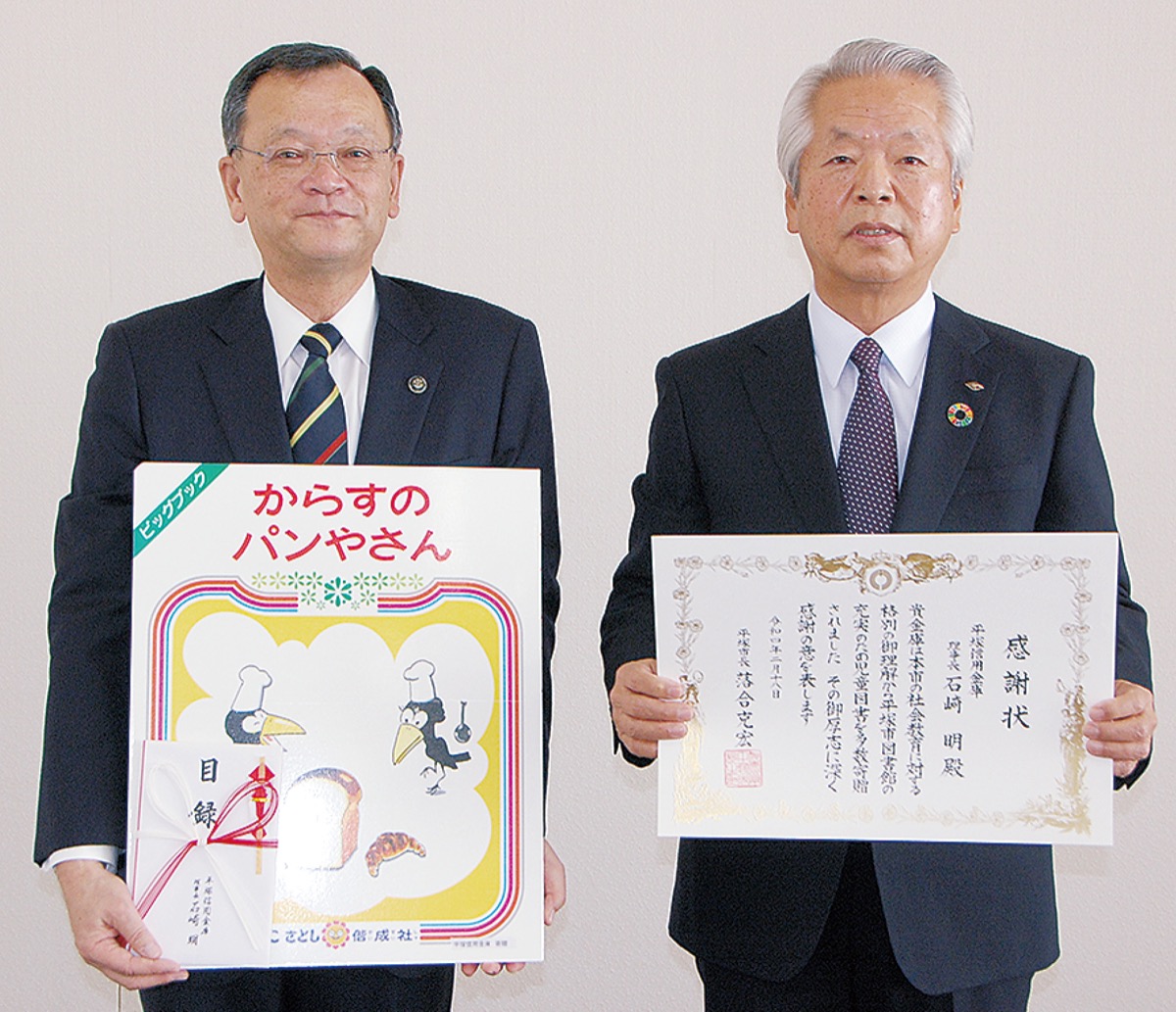 落合克宏市長は「『ひらしん文庫』として市民に定着しており、ありがたい」と謝辞を述べた。