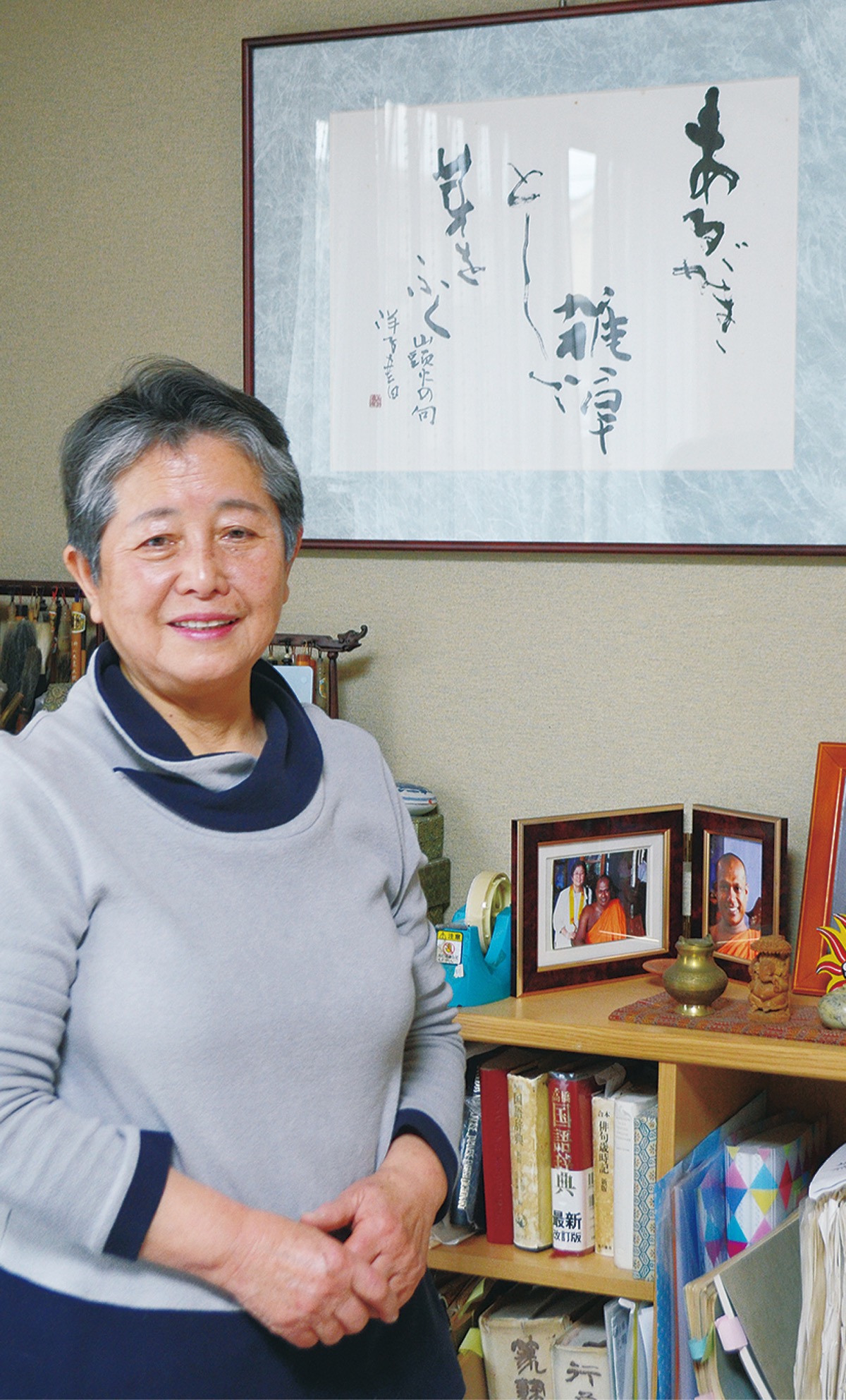 小谷野さんは墨画家の島田正治さんの作品に触れたことをきっかけに独学で墨画を描き始めた。1980年、仏教の信仰に厚かった母の供養になればと、新聞広告で見つけたインド旅行のツアーに参加。神仏を大切にする文化や、人々の生命力に強く惹かれた。