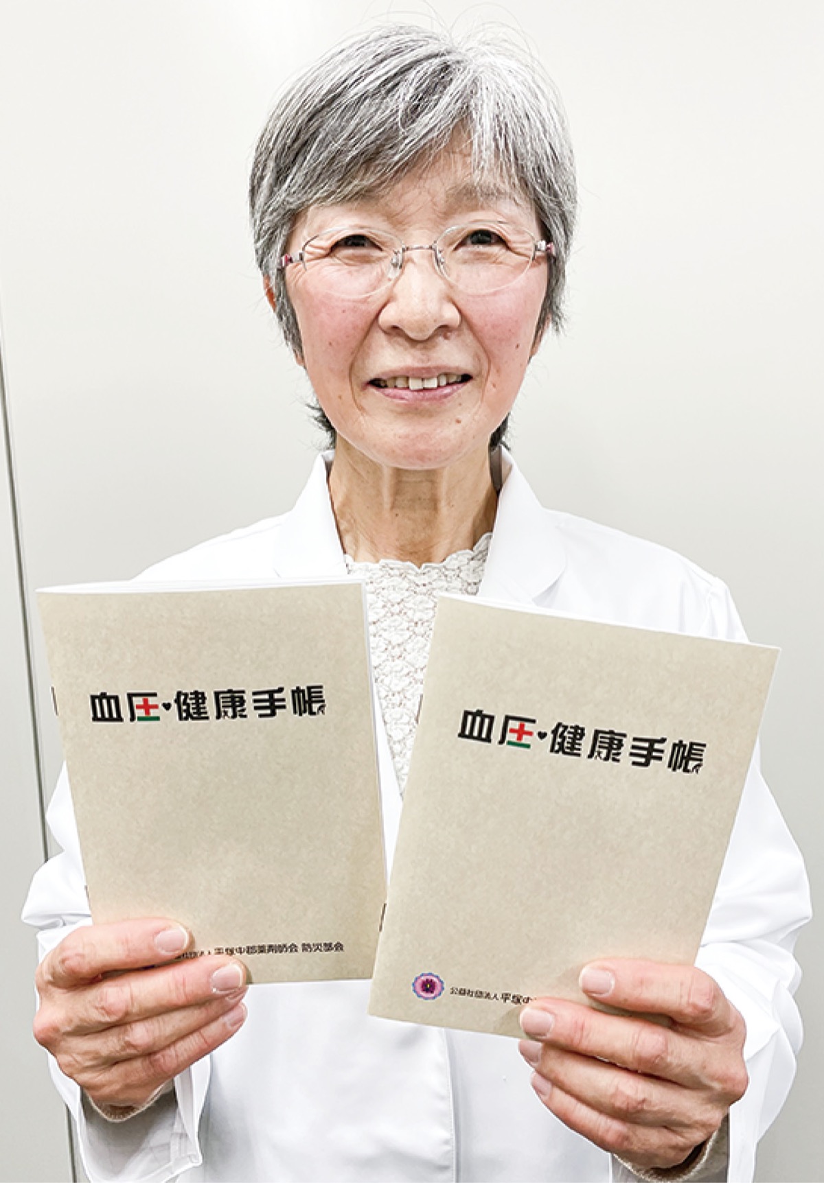 (公社)平塚中郡薬剤師会(今井裕久会長)の防災部会(鈴木衣乃里部会長)では、このほど「血圧・健康手帳」を作成、平塚・大磯・二宮エリアにある125店舗の薬局で無料配布している。部数は1万部。