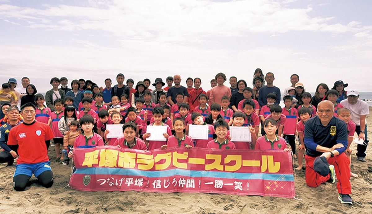平塚市ラグビースクールの2021年度卒業式が、3月27日に湘南ベルマーレひらつかビーチパークで行われた。
