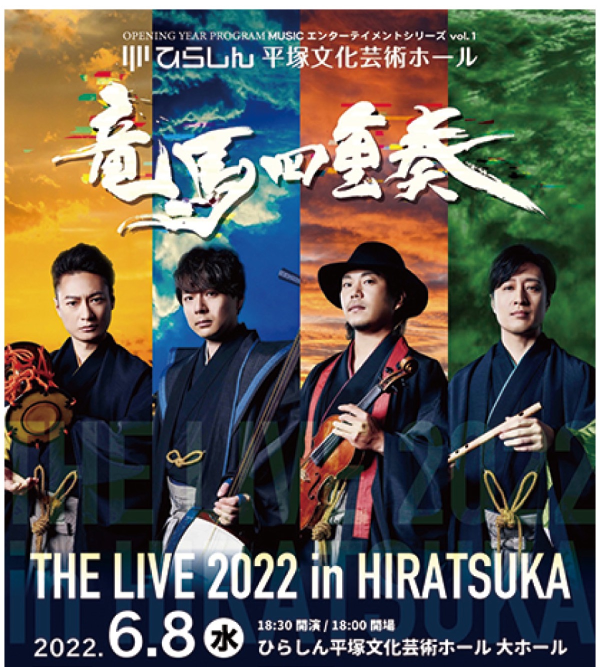 和洋折衷の4人バンド「竜馬四重奏」が6月8日(水)、ひらしん平塚文化芸術ホールでライブを開催する。本紙読者3組6人に公演チケットをプレゼント。